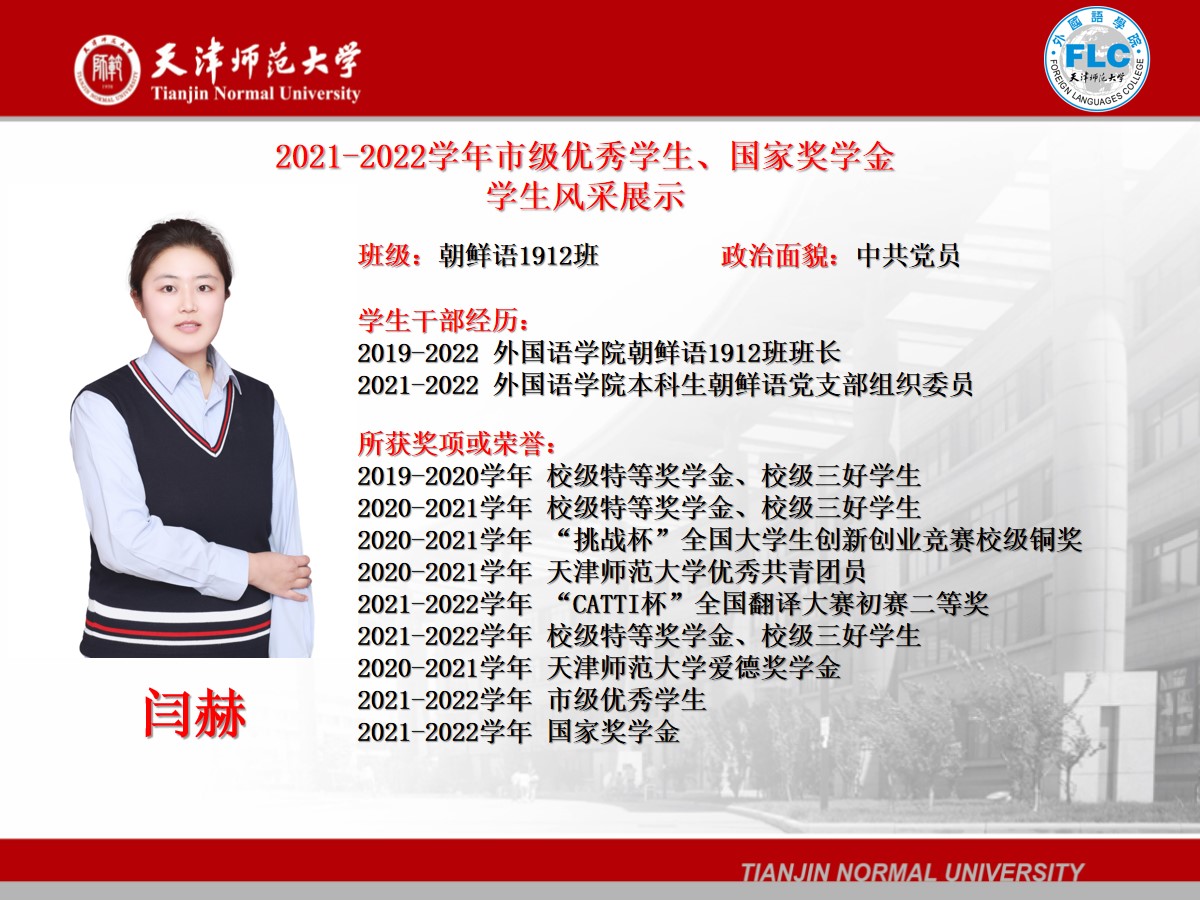2021-2022学年市级优秀学生、国家奖学金获得者——闫赫